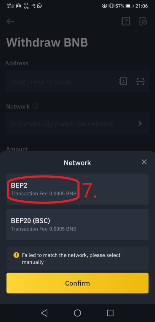 7. Wähle „BEP2“ und klicke dann auf „Confirm“ und danach auf „Withdrawal“